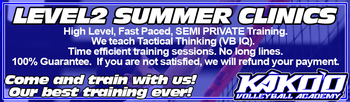 Specific skills and positions training sessions are included. We offer passing, serving, hitting, setting, blocking clinics as well as defense and offense clinics.